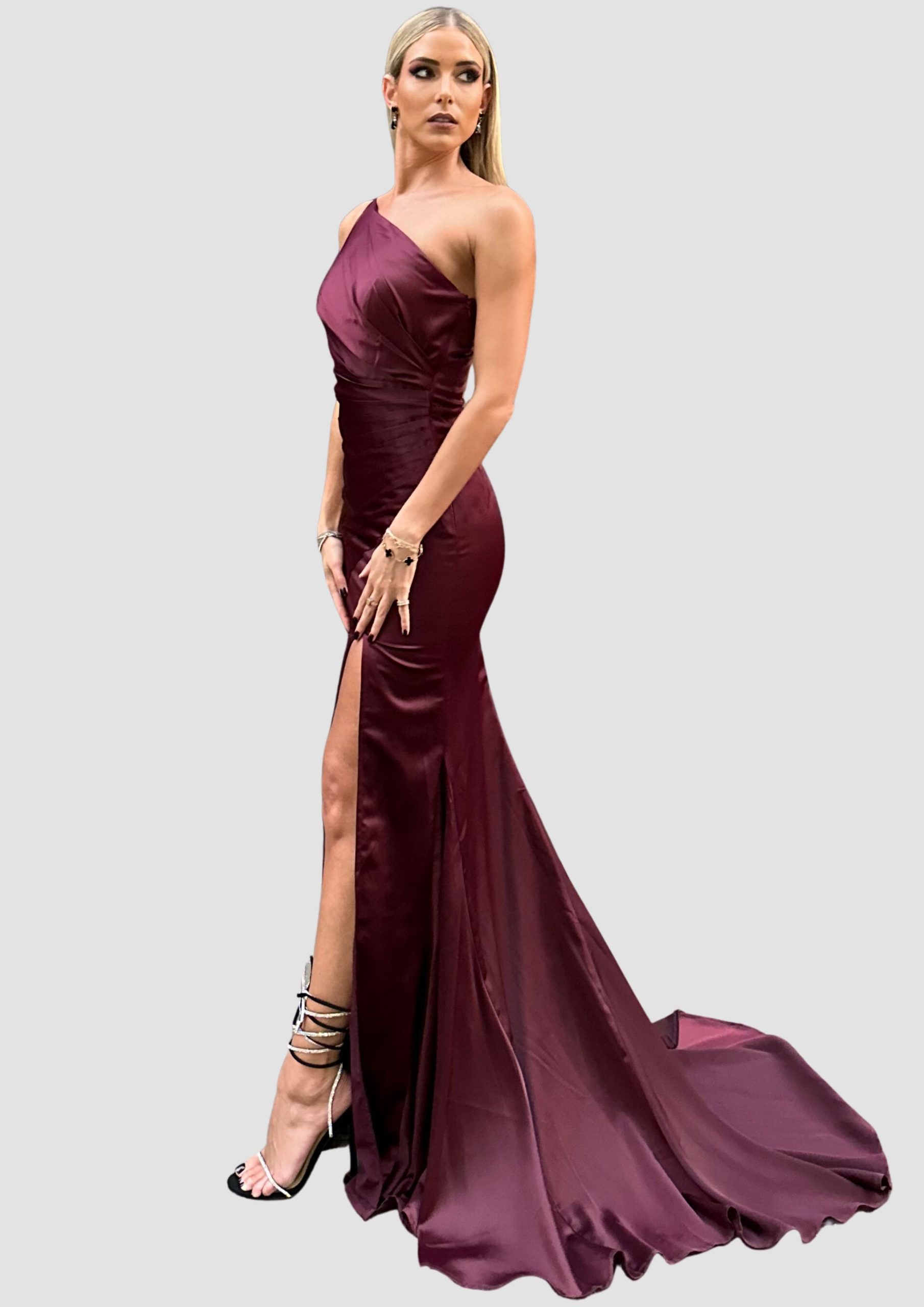 Tags: Black Tie, hire, one shoulder, red carpet, red dress, satin, sexy dress, wine dress